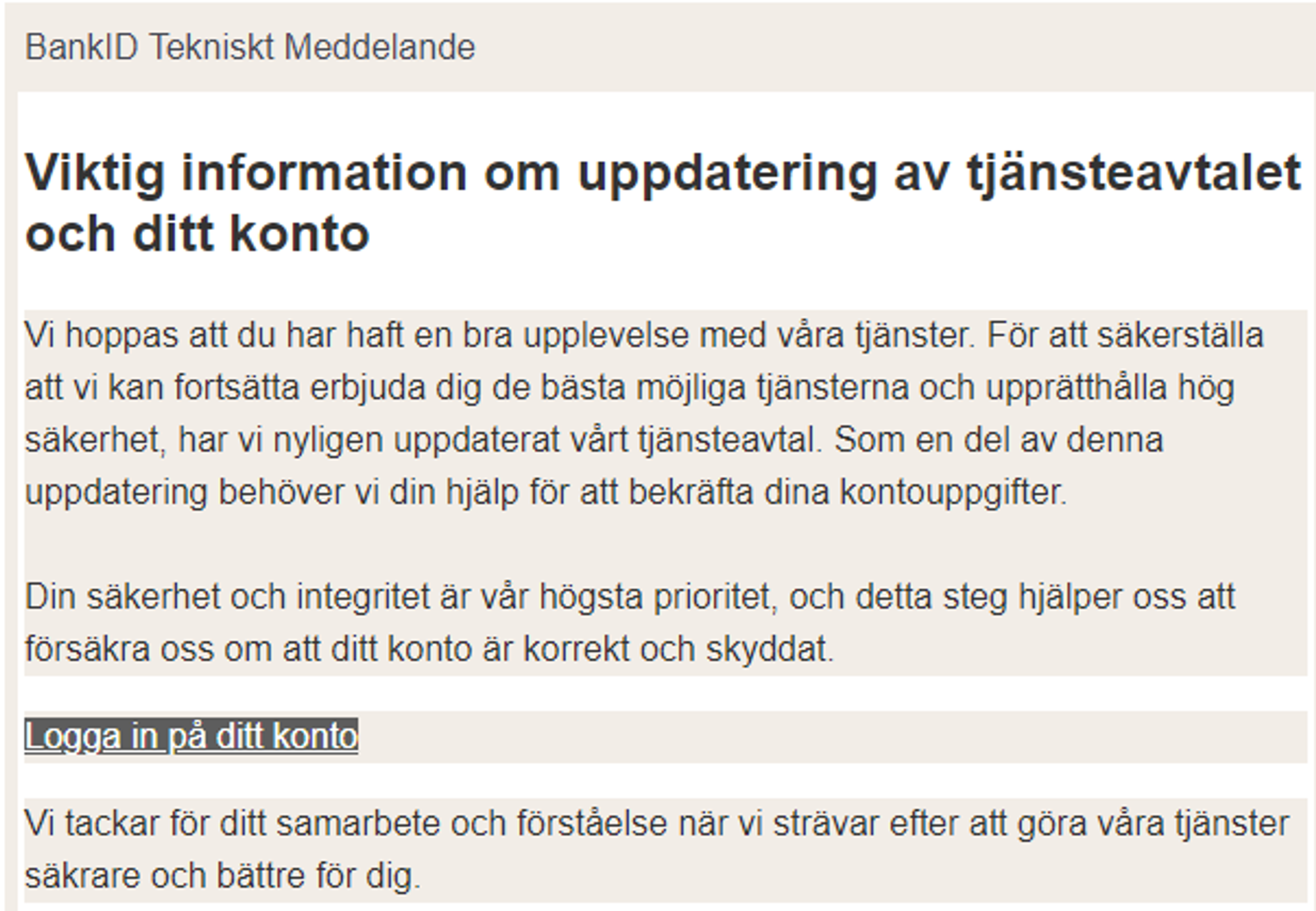 BankID varnar för bluffmeddelanden