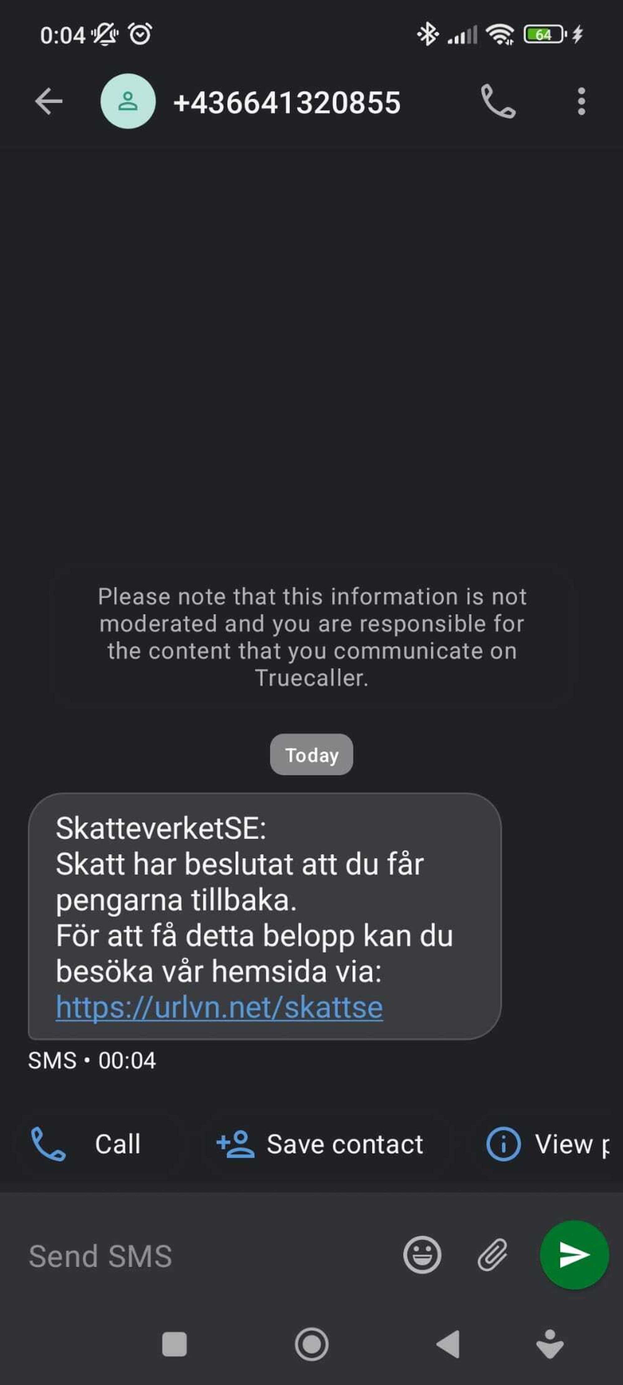 - Öppna aldrig länkar i SMS från okända avsändare, särskilt om de lovar pengar.
