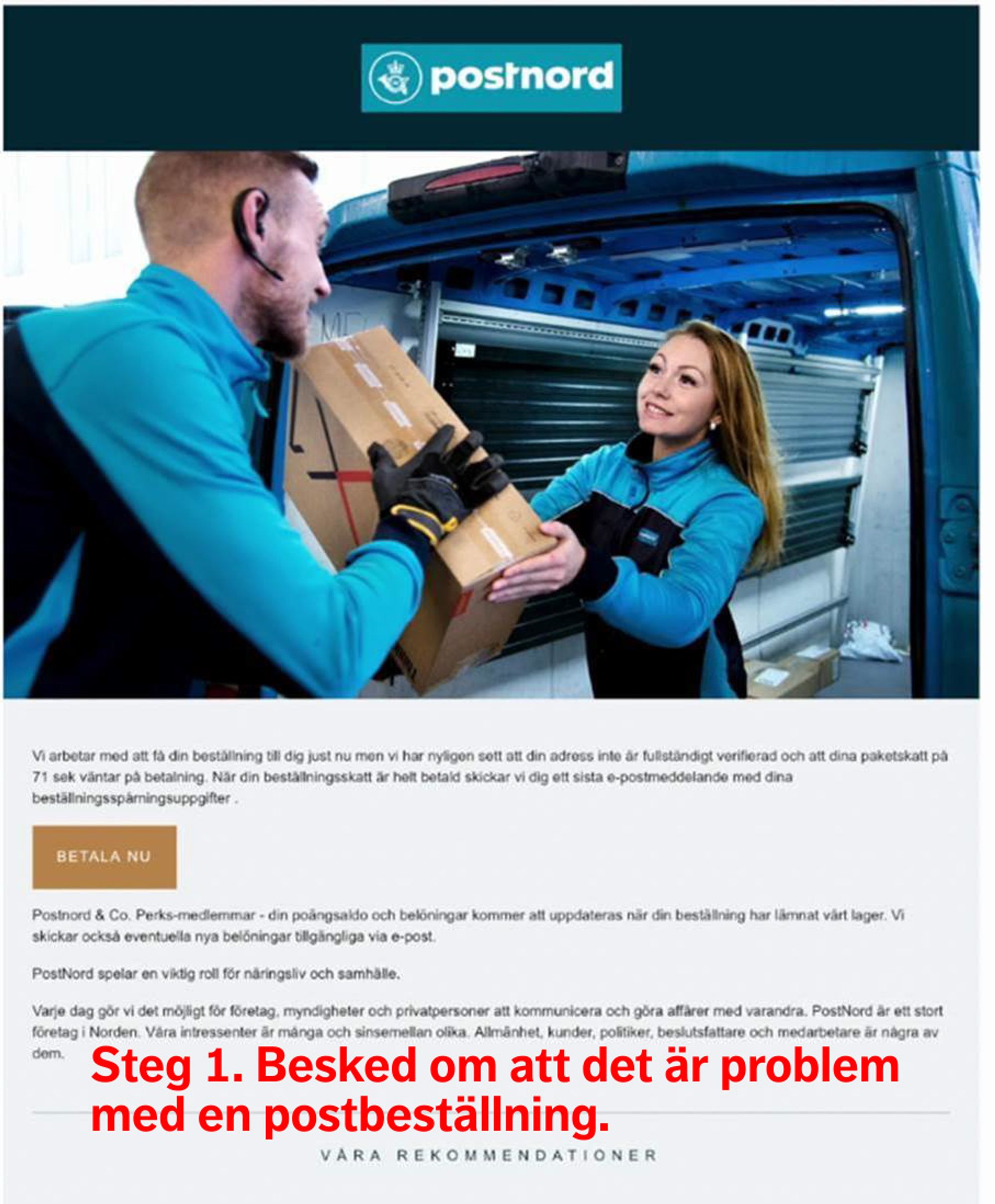 Varning för falsk webbsida som liknar PostNord