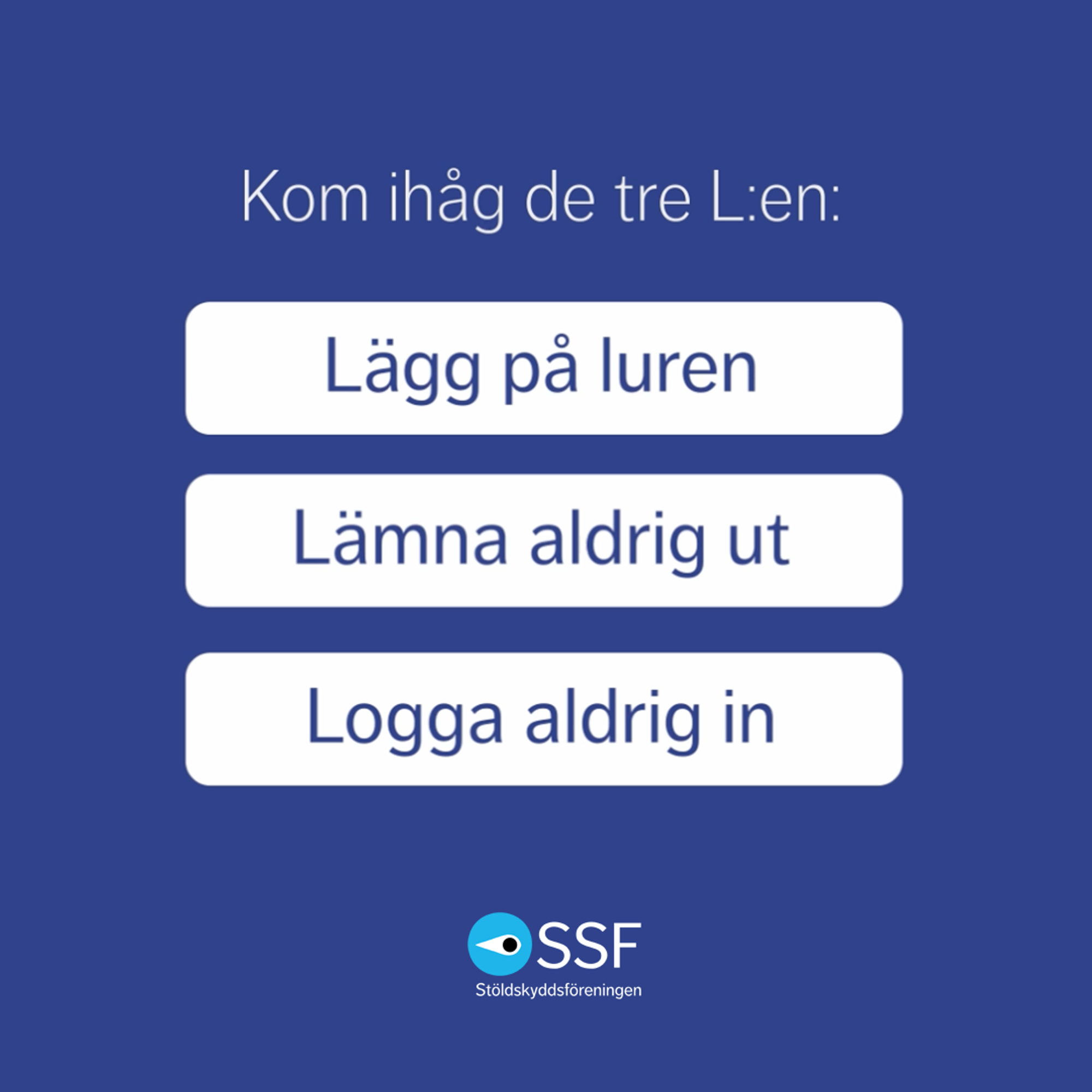 - Lämna aldrig ut dina personliga uppgifter, lösenord eller koder till någon okänd.